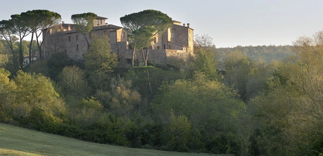 “Nestled into the hills of Monastero d’Ombrone, 15 miles east of Siena, Castel Monastero is set in a storybook eleventh-century hamlet with a circular piazza and stone tower.”