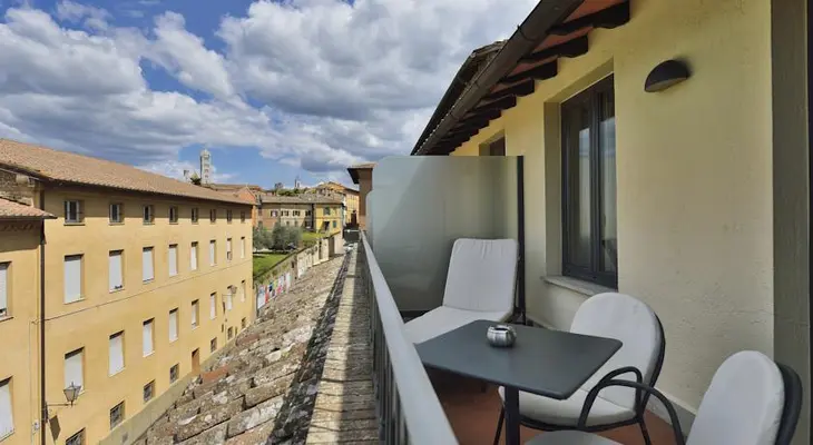 “Situated in a quiet residential area, this modern four-star hotel is just a short way from the Siena Duomo.”