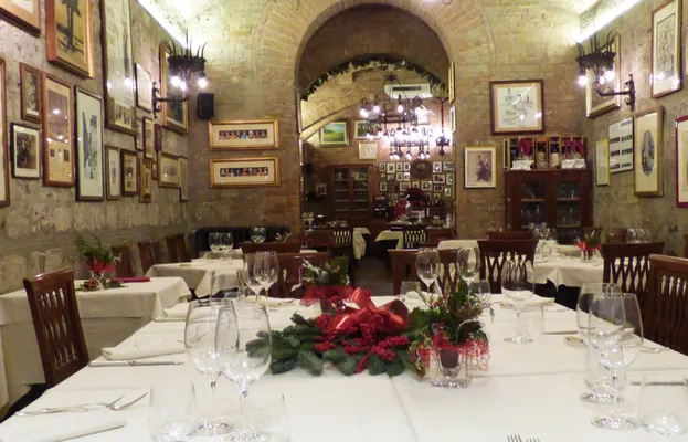 "In a 15th-century building with beautiful brick arches curving across the dining room, this elegant restaurant has the gentrified-rustic style that Tuscans have perfected."