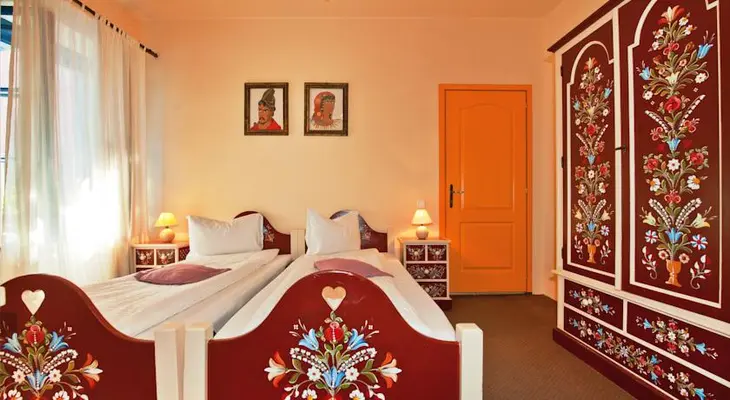 “Casa Saseasca houses nine rooms with traditionally painted Saxon furniture and widescreen views of the nearby square.”