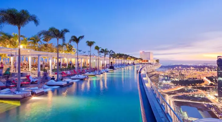 "Part of the ambitious Marina Bay Sands casino/retail complex, the Sands hotel is famed for its amazing rooftop infinity pool, which straddles across the roofs of the three hotel buildings." Full review