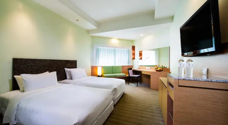 “With simple and modern decor, the hotel keeps up with the Far East Hospitality brand, and 380 guest rooms feature expected amenities like free Wi-Fi, flat-screen TVs, and minibars.”