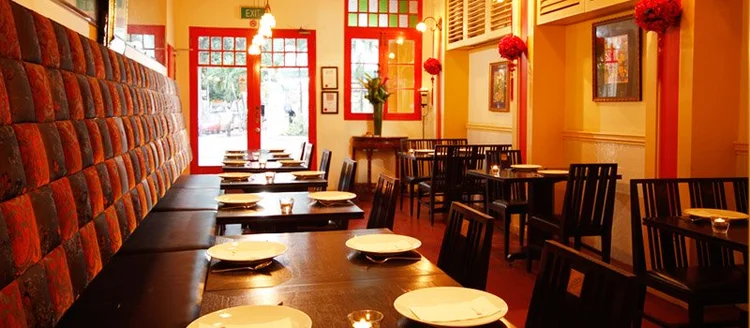"Occupying a restored Chinatown shophouse with antique stained-glass windows, Blue Ginger specializes in the distinct local cuisine called Peranakan, a mix of Chinese and Malaysian influences." Full review