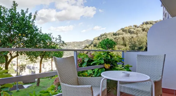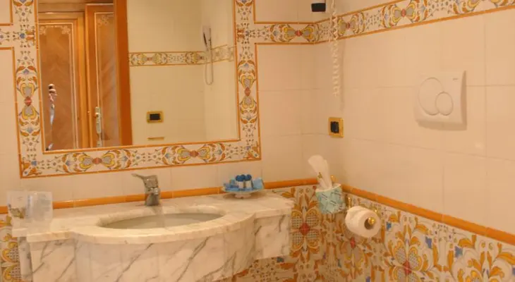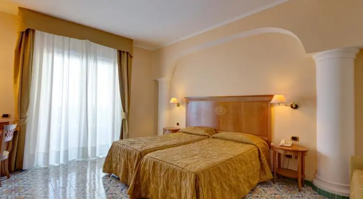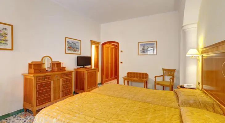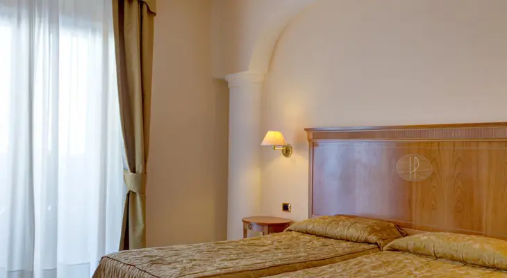 “Outside the Sorrento city center, with a hilltop setting providing sweeping views of the city and Gulf of Naples from the swimming pool, rooftop terrace, bars, restaurant, and many of the rooms.”