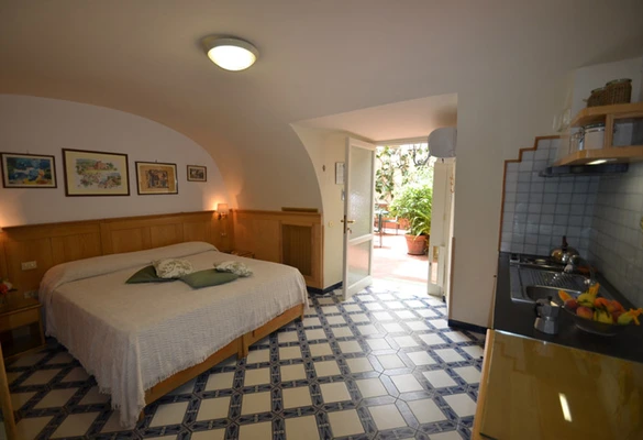 "An unbeatable location slap-bang in central Piazza Sant'Antonio, a secluded shared courtyard and a roof terrace make these family-run studio apartments one of Sorrento's best deals" Full review