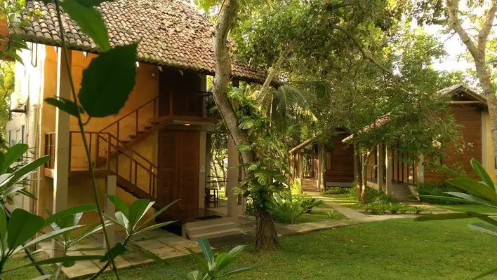 "Set on Goyambokka's beautiful main cove, the wooden cabanas and villas are hidden behind a veil of coconut palms and there's a fecund tropical garden and a games room." Full review