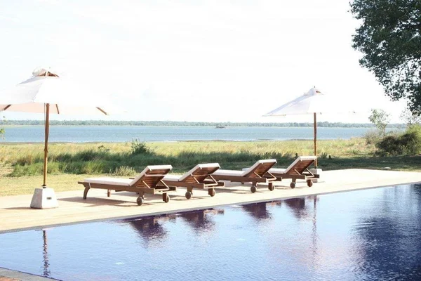 “Right by the lakeshore, this elegant, renovated two-storey hotel offers sublime views of the tank (and buffalo and birdlife) from its beautifully presented rooms, restaurant and pool area.”