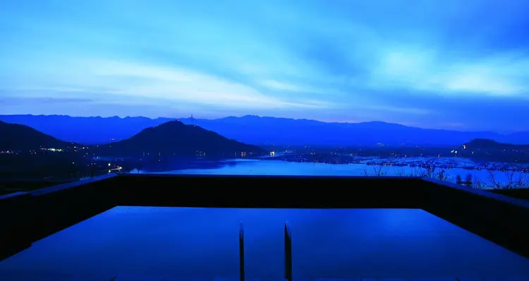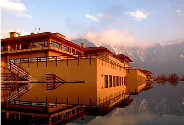 “Lakefront retreat in northern India with lavish rooms and an infinity pool overlooking the Zabarwan Mountains.”