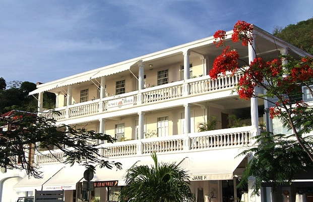 "A two-star hotel right in the center of Gustavia. Relatively simple rooms with a central balcony that overlooks the harbor and offers a great sunset view."