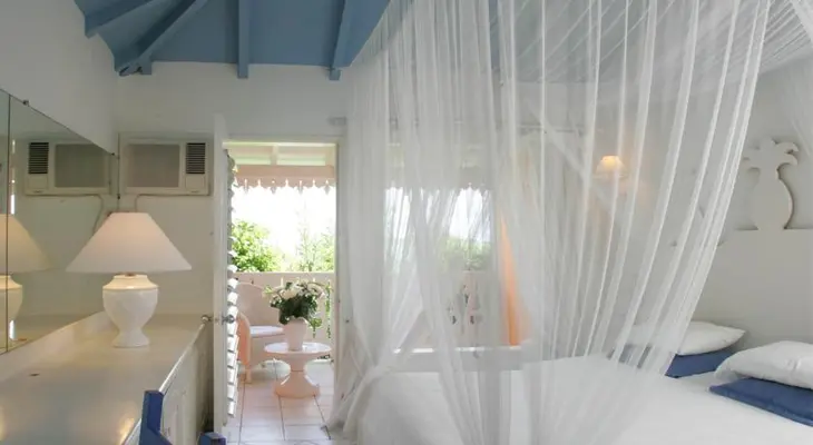 "Peering through truly lush gardens set into the hill overlooking St. Jean Bay, this small tropical aerie could hardly be more charming." Full review