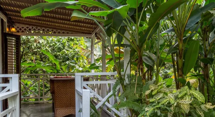 "Fond Doux's 135-acre organic plantation has been an active agricultural farm...the12 simple gingerbread cottages were moved from Castries to the rainforest gardens here, all uniquely different" Full review