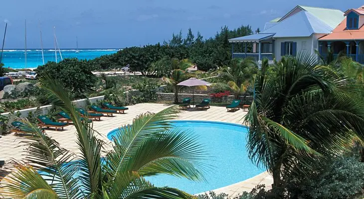 "One of the few resorts directly on the white-sand beach of Orient Bay, this hotel has a funky feel and spacious, colonial-style suites with terraces that overlook the pool, beach, or ocean." Full review