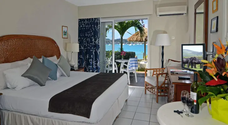 “This beachfront property on a cove at the east end of Grand Case has a friendly staff and spectacular sunset views.”