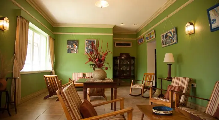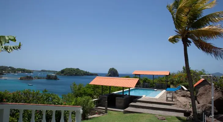 "A quiet hotel in a 19th-century mansion, surrounded by a large tropical garden and overlooking the beach on the south coast of St.Vincent."