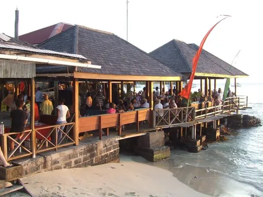 Perfect spot for a harborside breakfast or lunch; just before sunset, boaters come ashore to what is arguably the most popular gathering place in Bequia—the Frangipani Hotel's open-air waterfront bar — Fodor's