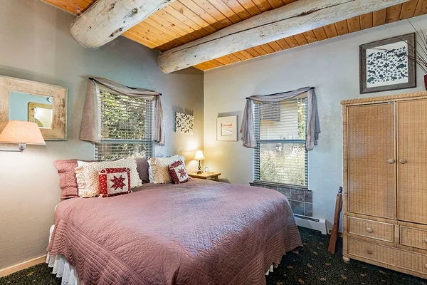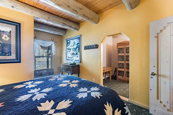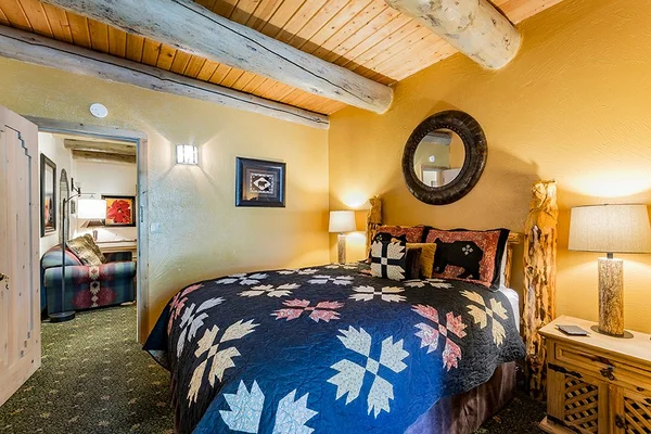 “A ranch-style, adobe and log home hand-built by the innkeeper.”