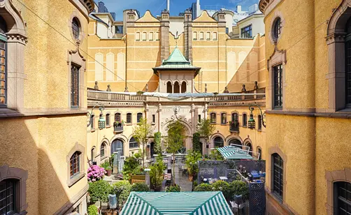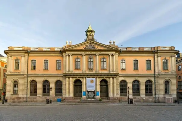 The Stock Exchange (1776) on the north side has two different activites under one roof. While traders run about the ground floor, the august members of the Swedish Academy occupy the other floors. — Michelin Guide