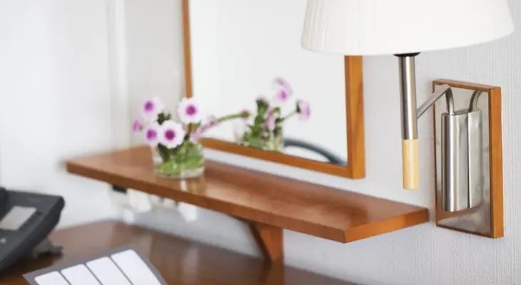 "The lobby greets you with friendly staff at a wood and marble frondesk. Library and home feeling is a thoroughgoing interior elements."