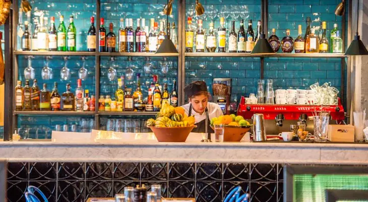 "Large and sleek lobby connected with a hyped lounge bar that fills up with a young and cheerful urban mix on weekends."