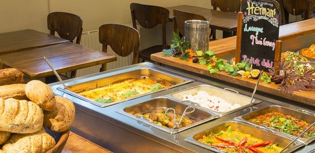 "A vegetarian restaurant with a difference, Hermans uses only organic ingredients and ecologically friendly methods."