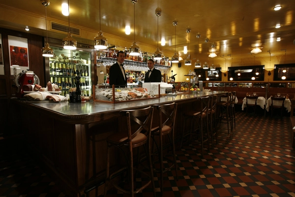 “Dark wood, mirrored walls, staff with bow tie. Paintings and graphic art everywhere, it’s said to have been payments from cleaned-out artists feasting on fine food and wine.”