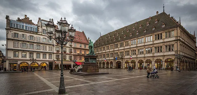 “In this square you will find thechamber of commerce, and the statue of Gutenberg, by David d'Angers.”