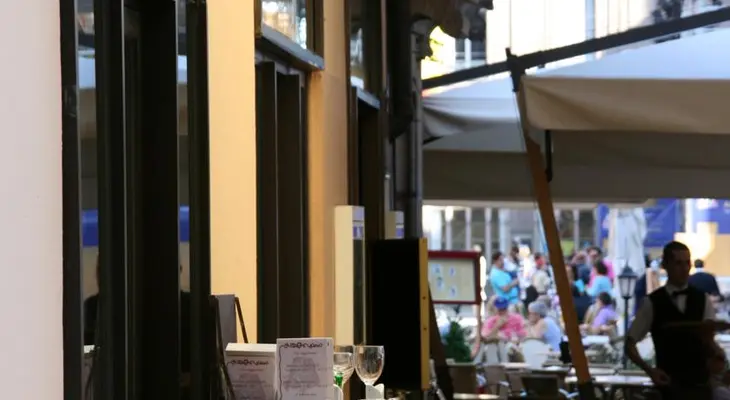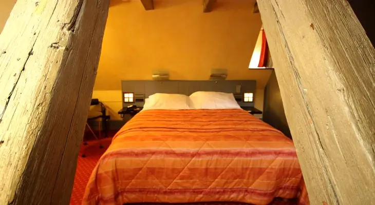 “Like a great guardian angel, the cathedral seems to keep watch over this hotel, which houses quiet, modern rooms.”
