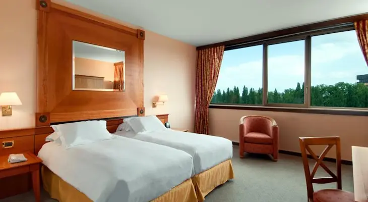 "The luxurious, seven-story steel-and-glass Hilton stands over a university complex opposite the Palais de la Musique et des Congrès." Full review