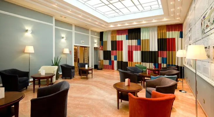 “The region's renowned eighteenth-century china decorates the comfortable, well-equipped rooms in this establishment. This classic hotel is located a short distance from the pedestrian district.”