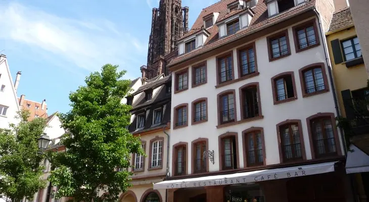 “In the pedestrian zone steps from the cathedral, this five-story hotel is one of the city's best values and within walking distance of the Palais de Rohan.”