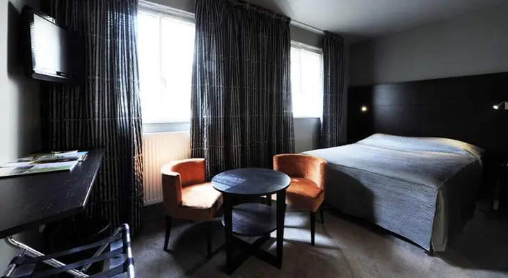 “Attractive, family-run place in a sixteenth-century building, with a small swimming pool/ sauna and its own restaurant... Closed mid-Dec to mid-Jan and (restaurant only) for three weeks in July.”