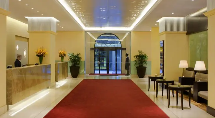 "Three archways guide guests through a modernist glass entrance to an almost avant-garde lobby, with a marble floor, rectangular pillars, large-scale artwork and soft lighting. " Full review