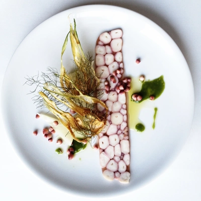 "Choose between the eight-course dégustation menu, which can also be vegetarian, or the à la carte menu."