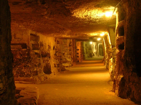 The Catacombs of St. John contain some 20,000 ancient tombs, honeycombed tunnels of empty coffins that were long ago looted of their burial riches by plundering grave robbers. — Frommer's
