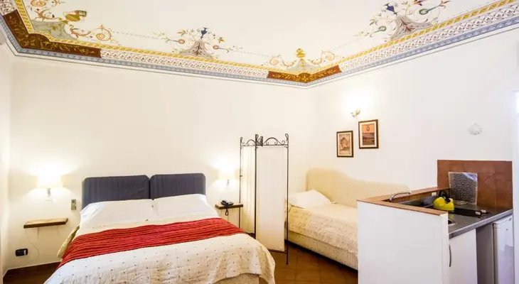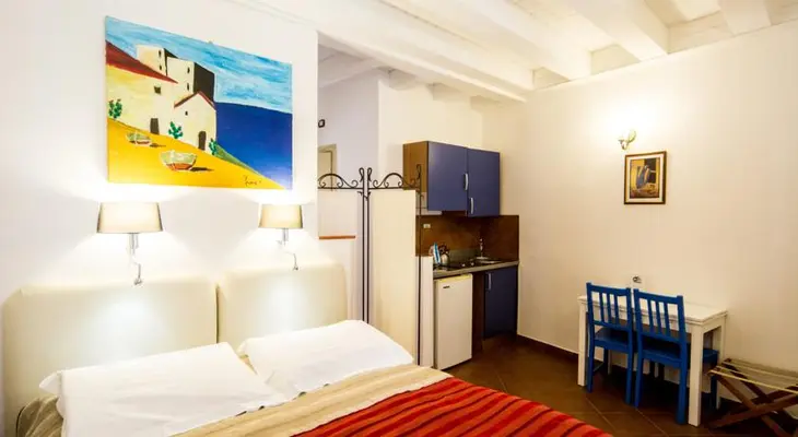 “This great budget option, elbowed into a tiny pedestrian street in a 17th-century building, has large rooms and apartments with kitchenettes, wi-fi, satellite TV and small balconies.”