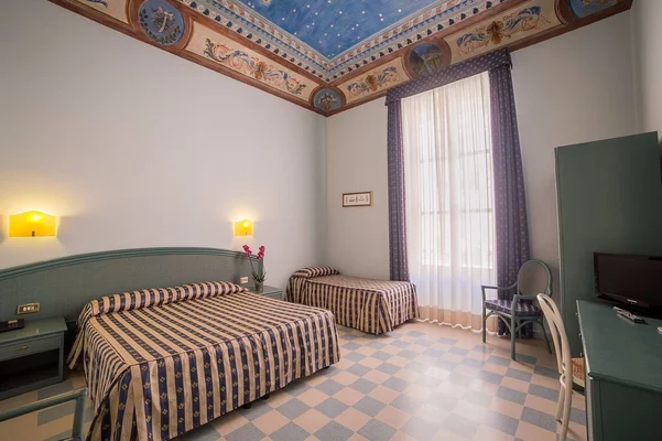"This handsome, small hotel is in a great location on Ortygia. Rooms are spacious, with chequered floors and high ceilings, a few adorned with frescoes."