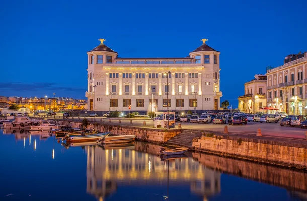 “A magnificent Mussolini-era post office transformed into an opulent light-flooded palace commanding the bridge that crosses from the town of Syracuse to the island of Ortigia.”