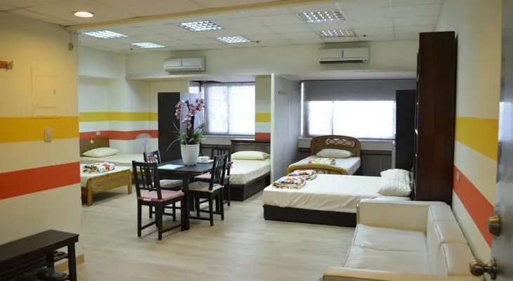“Located inside a high-rise building overlooking Taipei Main Station. ... Dorm rooms with as many as eight beds share bathrooms; singles rooms and suites with private baths are also available.”