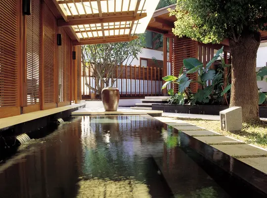 “Originally a private club, this hot springs hideaway still feels exclusive. Water, stone and wood blend harmoniously in expansive rooms with private springs and LOccitane bath products.”