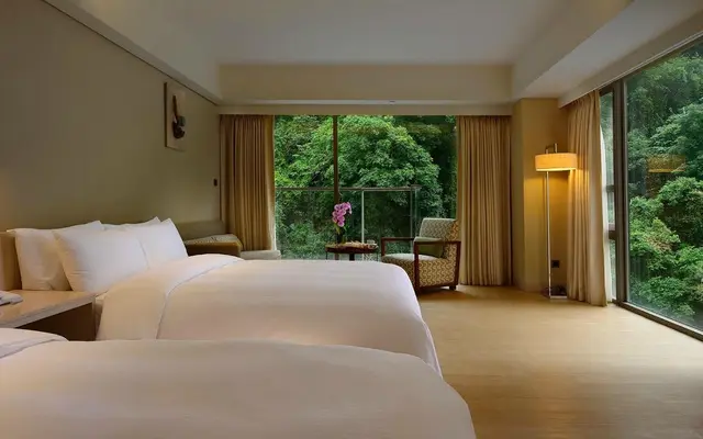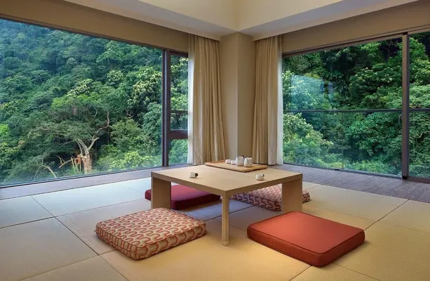 “An elegant hot springs hotel nestled amongst the quaint Taiwanese mountainside with a complimentary dinner for two.”