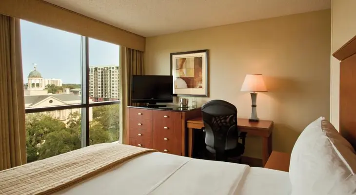 "Large, business-oriented luxury hotel in the middle of downtown. Spacious rooms come with views of Ponce de Leon Park or the Capitol Building. Complimentary airport shuttle."