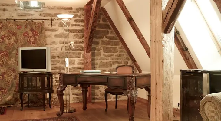 "Behind its pretty powder-blue facade, this boutique 14th-century offering has richly furnished rooms with plenty of original features (timber beams and stone walls)." Full review