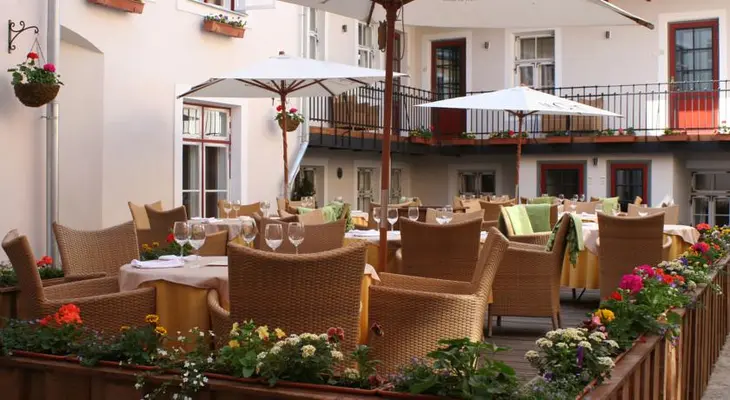 “In a three-storey, fourteenth-century building steps from the town square, this boutique hotel is a perfect blend of old and new.”