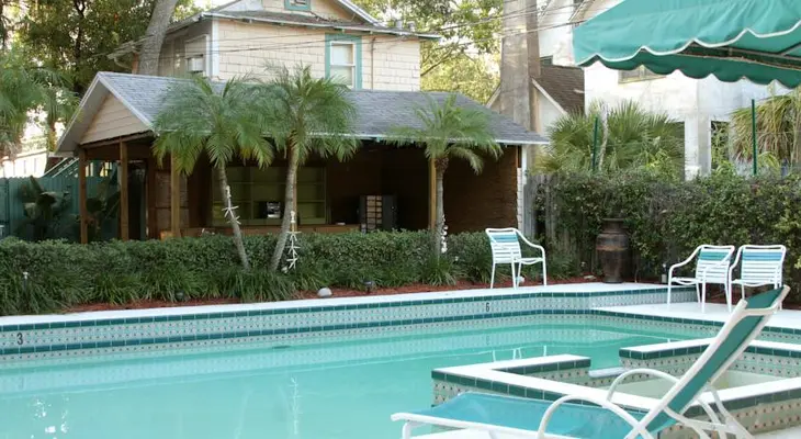 "Two turn-of-the-century buildings with 12 rooms shelter a lovely courtyard with a small pool and hot tub on the edge of the Old Northeast."