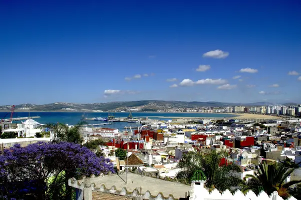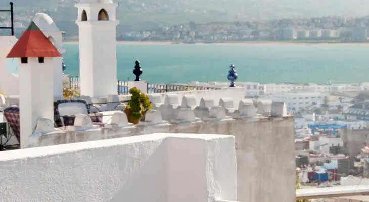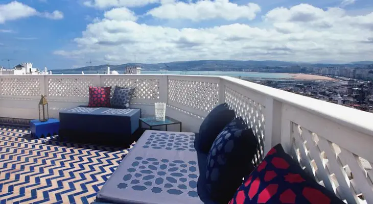 The spectacular rooftop terrace delivers panoramic views across the Strait of Gibraltar and the Tanger-Ville port. — Fodor's