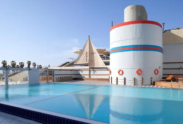 “The four-pearl Herods Tel Aviv is a high-rise hotel on the beachfront side of the city's hotel zone.”