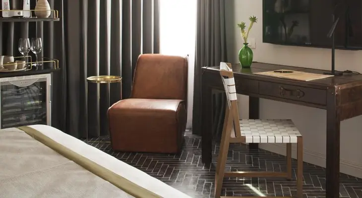 “The Rothschild Hotel is a luxury boutique hotel that's popular with business travelers and couples, right off Rothschild Boulevard.”