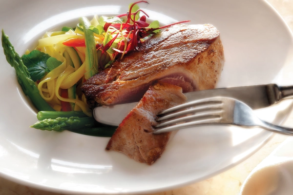 The delicious meal starts when you choose from an offering of 12 small appetizers brought around by your waiter (the fish and seafood tapas are best—make sure to have the dishes explained to you and choose a few that you like).