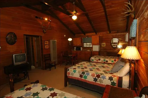 "One of Bandera's oldest dude ranches, the Dixie opened its doors to guests in 1937. Cabins and cottages are available for large parties, as are individual rooms in the rustic bunkhouse and main lodge." Full review