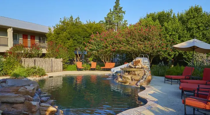 “ Just a couple of blocks off Main Street and nestled on the banks of Baron's Creek, this no-frills, straightforward inn offers clean, comfortable rooms, refreshing pools, and a quiet respite.”